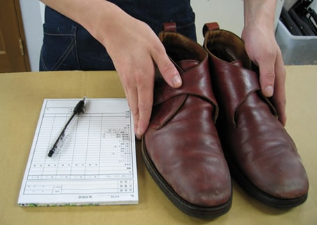 修理後は靴磨きいたします。資材は国産・外国製の一流品を使用しております。